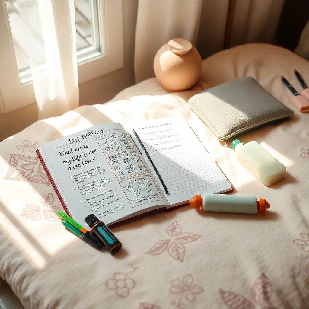 Enhance the atmosphere with calming elements. Consider using soft lighting and soothing scents. As you settle in, reflect on these prompts: